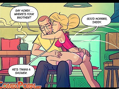 Honey, where is your brother? He's taking a shower and jerking off his dick on the comix porno