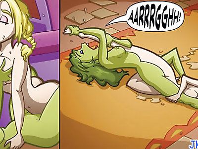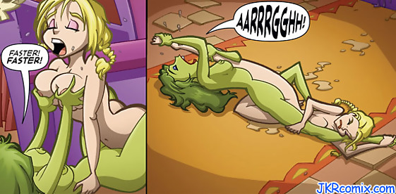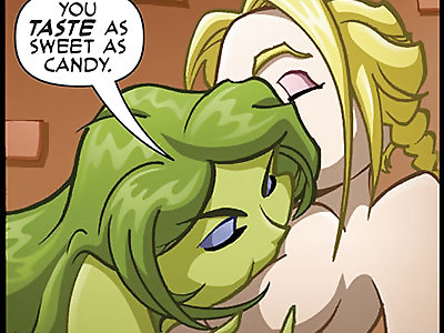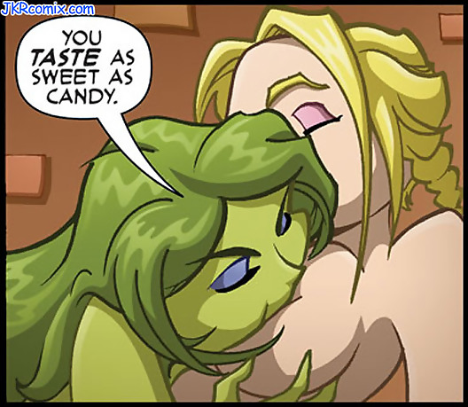 Horny cartoon lesbo girls on taste sweet as candy. Green witch and her victim