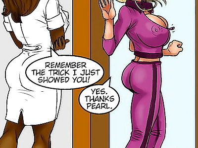 Hot lesbian whores of interracial comics performing nipple teasing show right in the hospital!